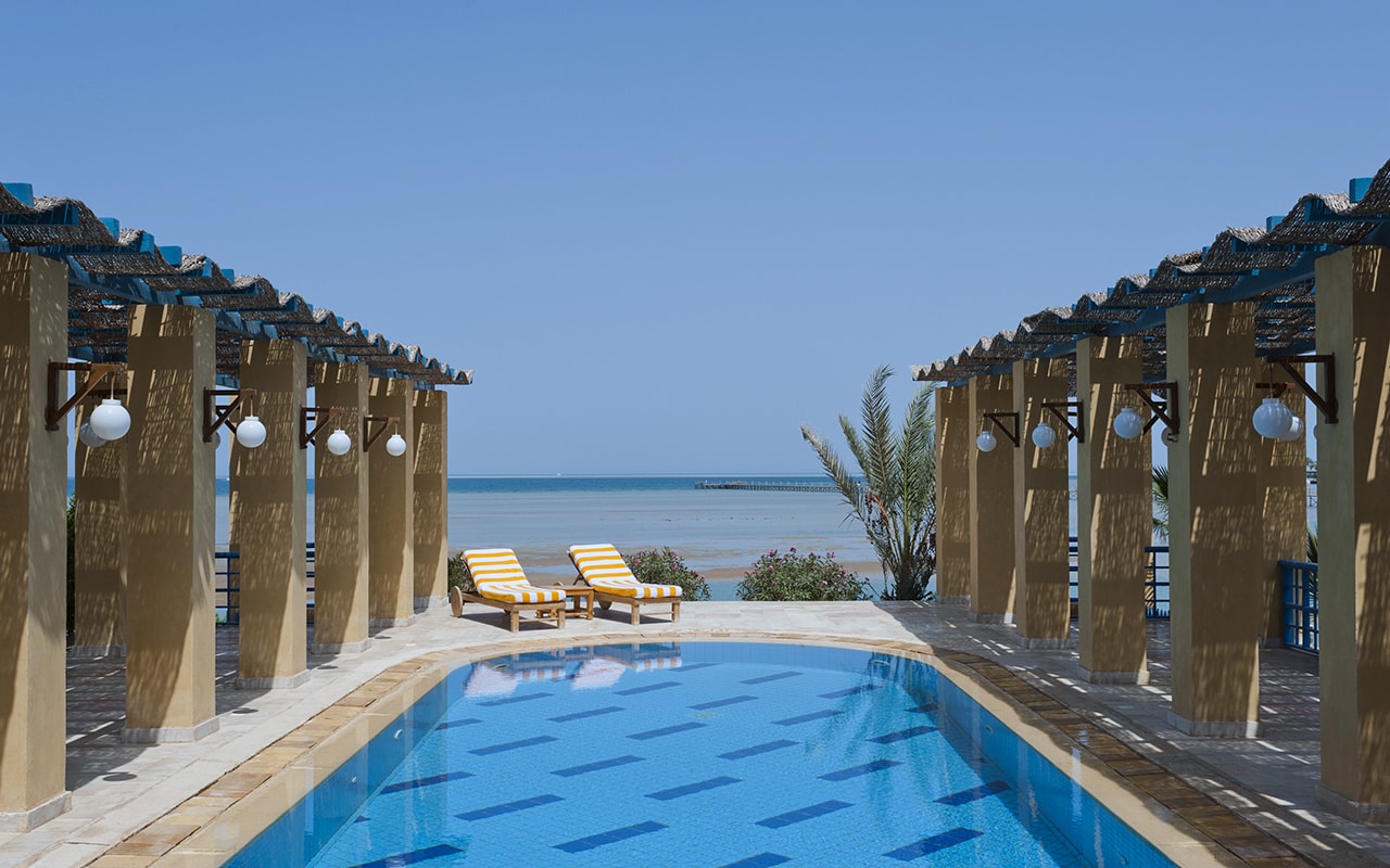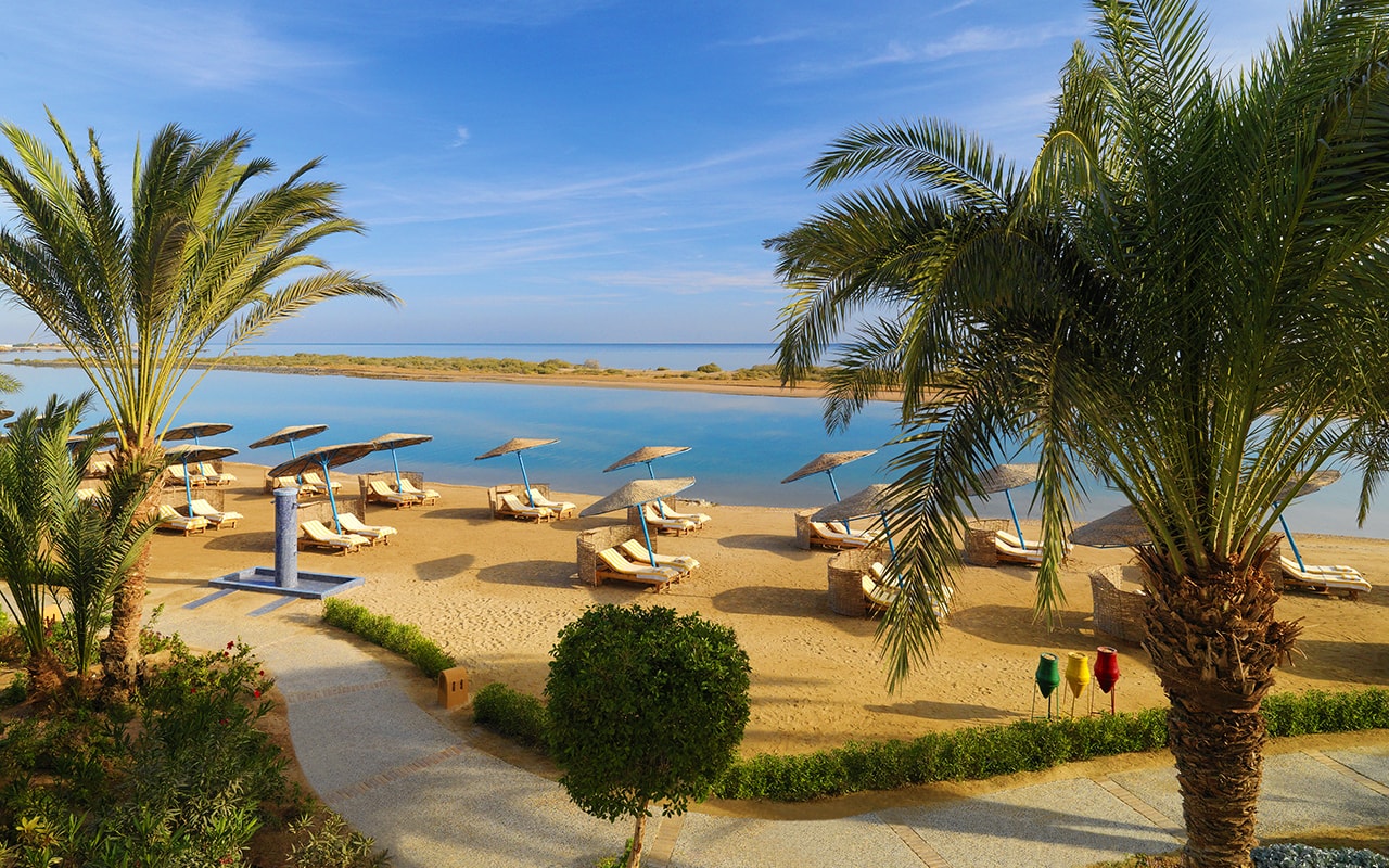 Viesnīca: Oāze tuksneša vidū – tā var raksturot viesnīcu Sheraton Miramar 5*, kuru projektējis slavenais arhitekts-dizaineris Maikls Greivss. Viesnīcas ēka iemieso tradicionālā nūbiešu stila un spilgtu arābu akcentu apvienojumu, kas atspoguļojas telpās ar augstiem kupolveida griestiem un izsmalcinātu dekoru, greznā vestibilā un mājīgajos restorānos.
